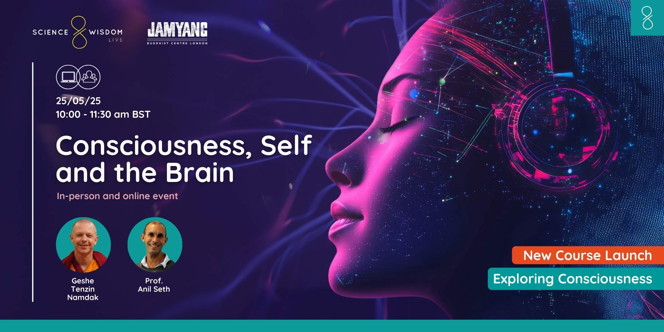 This special event brings together two distinguished experts: Buddhist scholar Geshe Tenzin Namdak and consciousness researcher Prof. Anil Seth, who will investigate the fundamental questions of how consciousness arises, the relationship between brain and mind, and what ancient contemplative traditions and modern science can learn from each other.